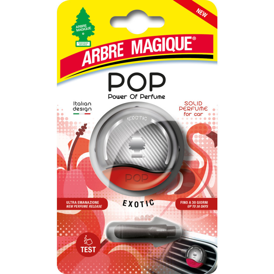 Arbre Magique Pop Exotic è un deodorante ambiente per auto monouso con una fragranza fruttata e tropicale, pensato per offrire un’aria fresca e vivace in ogni veicolo. Ogni unità è pratica e facile da usare, ideale per chi cerca una profumazione esotica e intensa in modo semplice e veloce.