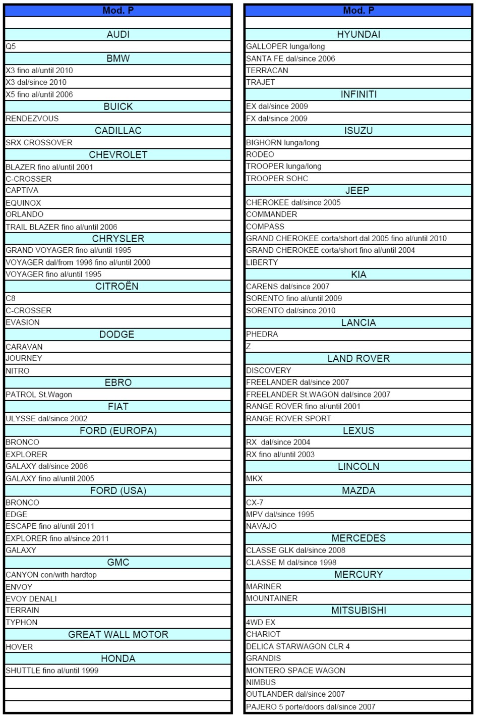 195/15, 195/80 R15, 205/14, 205/60 R17, 205/80 R14, 215/14, 215/50 R17, 215/55 R17, 215/60 R16, 215/70 R14, 215/70 R15, 225/45 R18, 225/50 R17, 225/55 R16, 225/65 R15, 235/35 R19, 235/40 R18, 235/45 R17, 235/50 R16, 235/60 R15, 245/45 R16, 600/15, 890/15