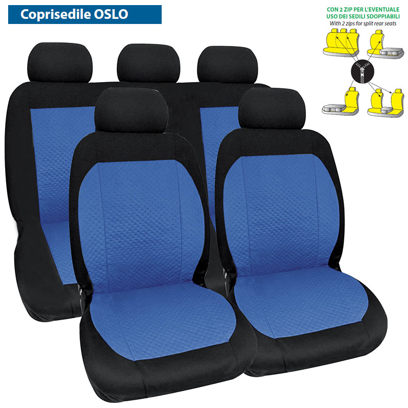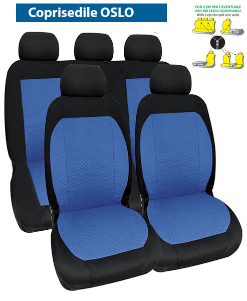 Promo: acquista 12 set ass. (Oslo/Monaco), 2 fodere saranno OMAGGIO (10+2).Con 2 Zip per eventuale uso con sedili sdoppiabili, cerniere sul posteriore – Si possono usare anche su sedili con Air Bag laterale – 100% Poliestere.