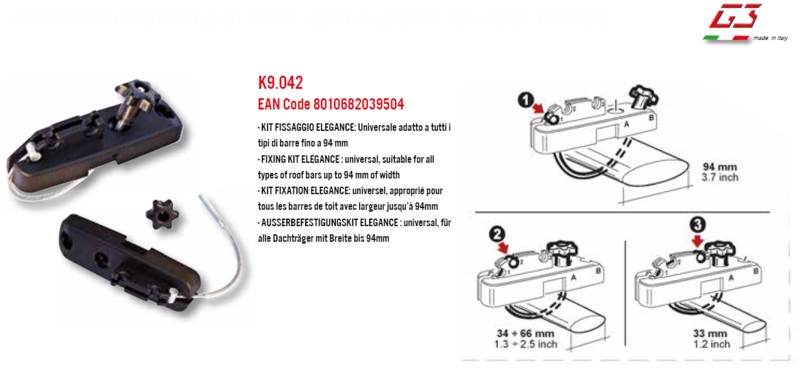 Adatto a tutti i tipi di barre fino a 94 mm.