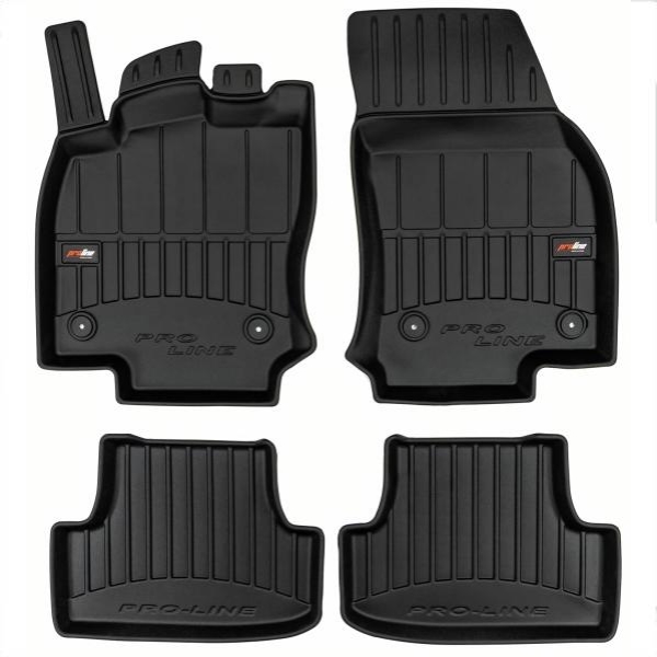Serie completa tappeti anteriori e posteriori realizzati in TPE UltraFlex Dual Polymer, provvisti di bordi alti fino a 7 cm. Con poggia-piede sul lato guida e bottoni di fissaggio a scatto.